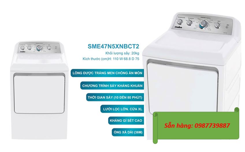 Máy sấy quần áo Mabe SME47N5XNBCT2 có 3 chương trình sấy cơ bản: (Đồ mặc hàng ngày( Sấy khô hơn, Sấy ít khô, Sấy ít khô hơn, Làm nguội), Vải Cottons( Làm nguội, Tối ưu độ khô, Kháng khuẩn), Đồ mỏng( Sấy khô hơn, Sấy ít khô hơn), Kéo dài thời gian, giúp cho đồ mặc của gia đình luôn luôn đảm bảo khô ráo, đặc biệt là vào mùa mưa hoặc mùa ẩm ướt thì đây là thiết bị không thể thiếu cho gia đình của chúng ta.